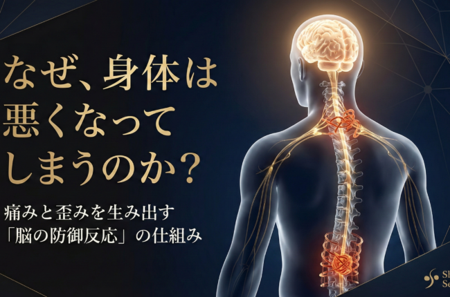 慢性痛や事故後の不調は、姿勢や神経の乱れが原因です。当院では精密な分析に基づき、脳・神経へアプローチ。一時的な緩和ではなく、再発を防ぎ「本来の回復力」を引き出す根本改善を提供します。