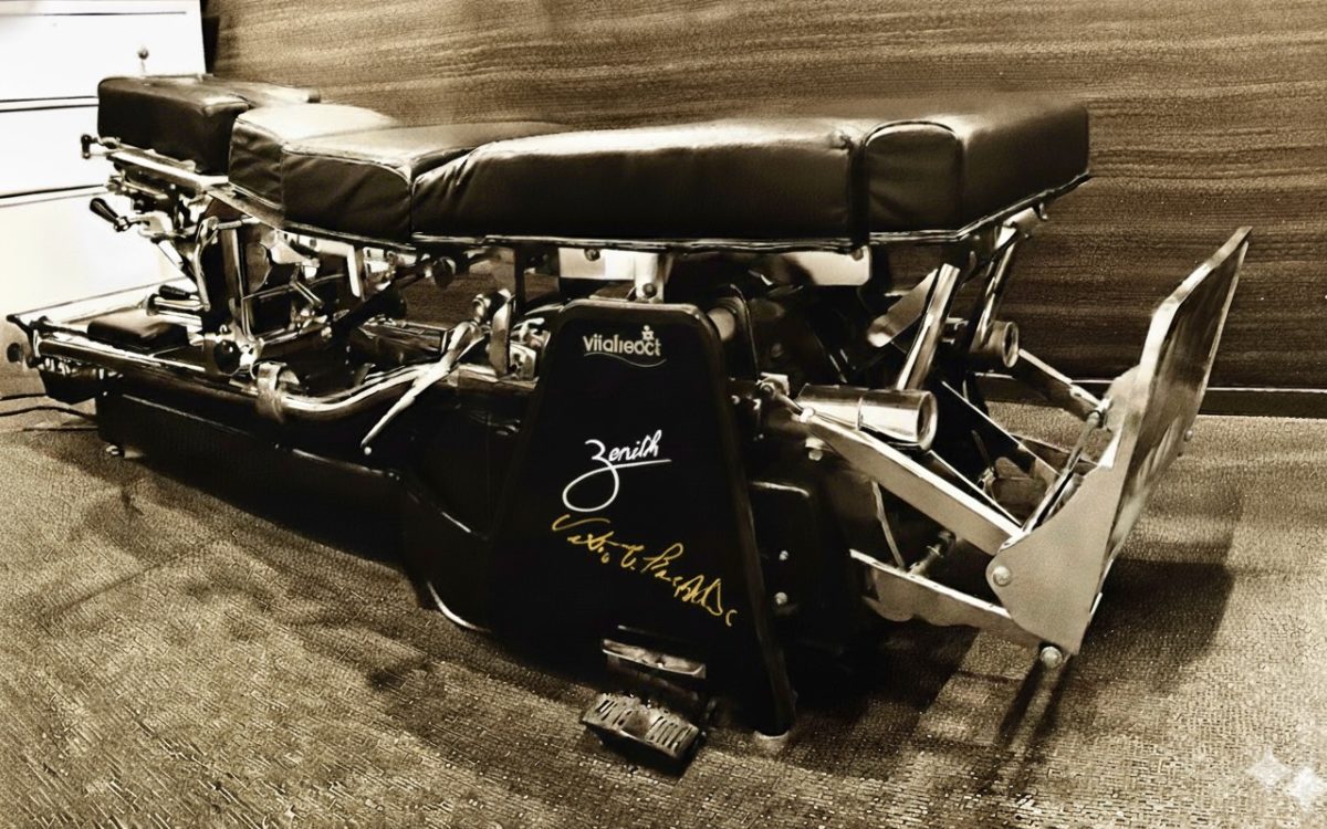これは、ガシャンと音が鳴る特殊なベッドで、落下の慣性を利用することで、身体への負担を最小限に抑えながら、正確に骨のズレを整える技術です。ボキボキと無理に捻るような強い力は一切加えません。