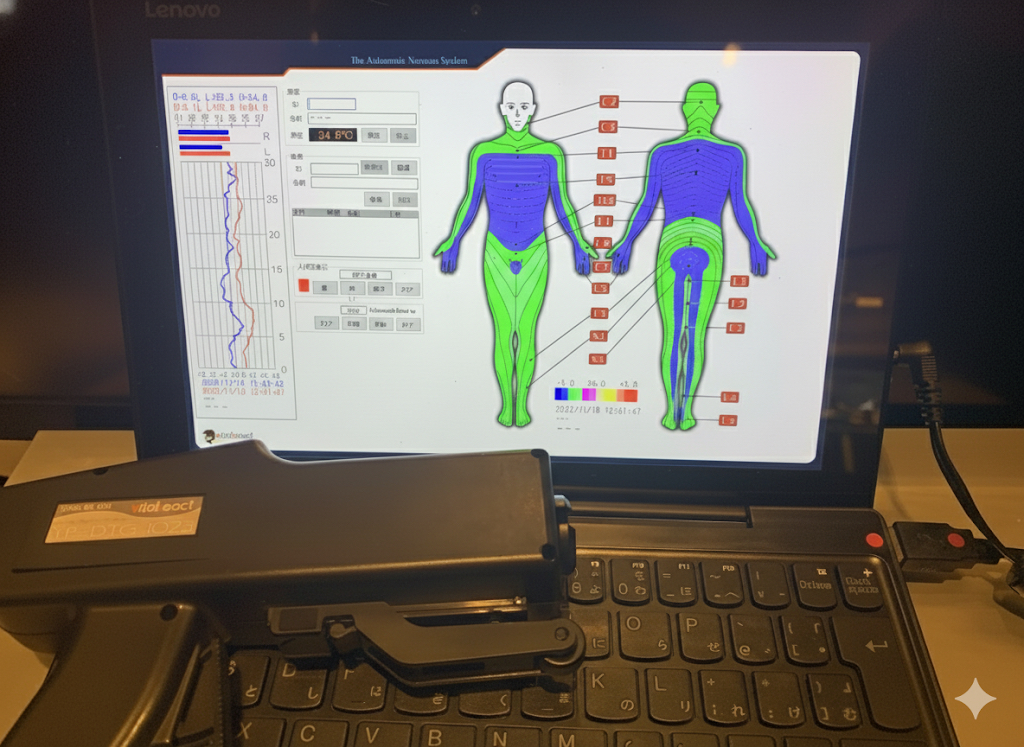 まずは赤外線サーモグラフィー(DTG)などの最新計測機器を使い、目に見えない「神経の働きが悪い箇所」を科学的に特定します。